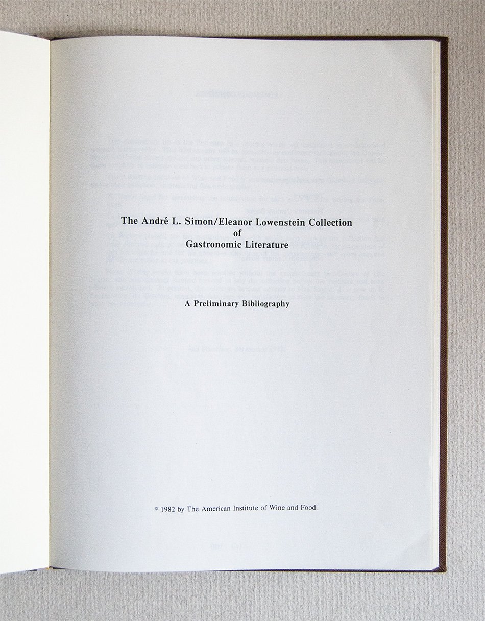 The André Simon/Eleanor Lowenstein Collection of Gastronomic Literature. A Preliminary Bibliography.