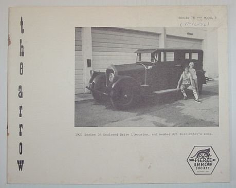 - The Arrow: Series 76, Model 3 original 1931 Club Sedan, Two photos of Seth Ely's 1911 'Touring Car', Many pages of photos from the PAS 1976 meet at Painted Post, NY, 13 glorious pages reproduced from a catalog entitled 'Presenting, the Pierce-Arrow Dual-Valve Six, Series 33, plus specifications from the Dealer Data Book, with emphasis on body details, List of P-A's available for sale by Dr. Art Burrichter in, Florida, Back cover features a reproduction of sales literature from the, 1925 Series 33 Portfolio Antiques and Collectibles, Transportation
