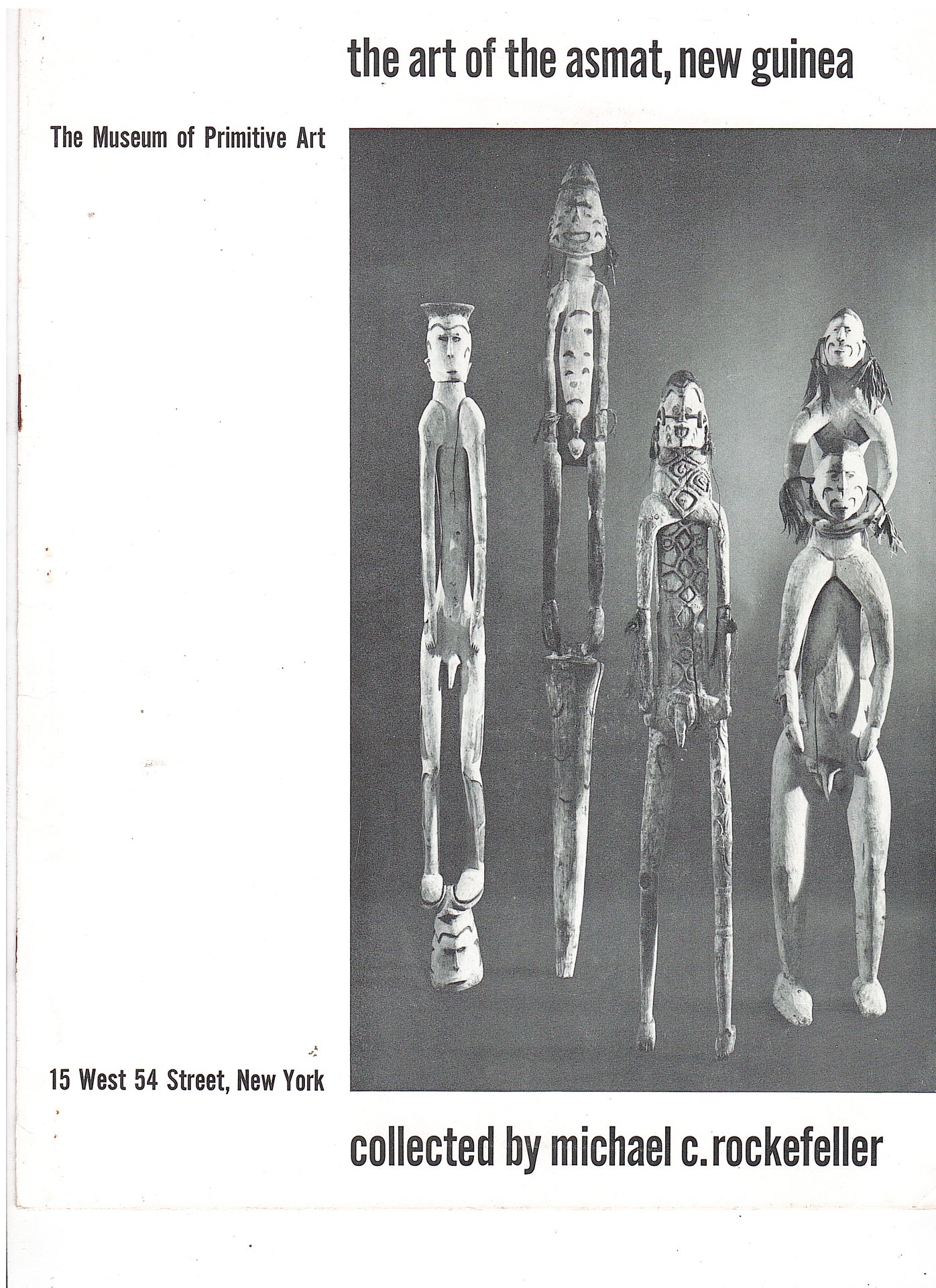 21X28, brossura, New York, The Museum of Primitive Art 15 West 54 Street, 1962, 9 pp, ill. b/n, rarissima brochure per l'esposizione della collezione M. Rockefeller il giovane erede miliardario collezionista ucciso dalla popolazione cannible Asmat della Nuova Guinea. Molto raro, buone condizioni generali qualche macchietta di acquarello sul retrocopertina