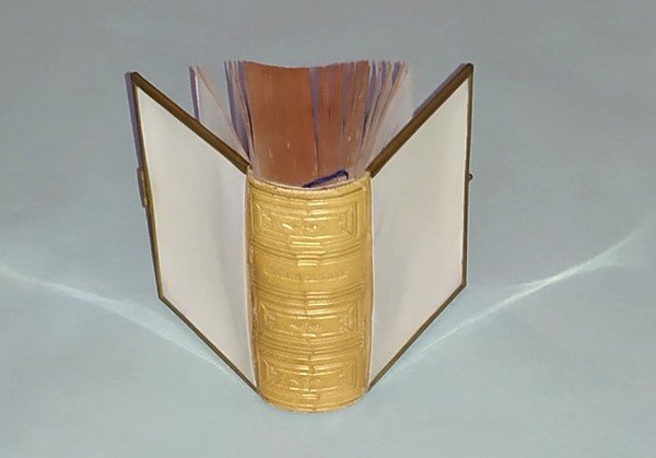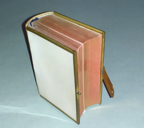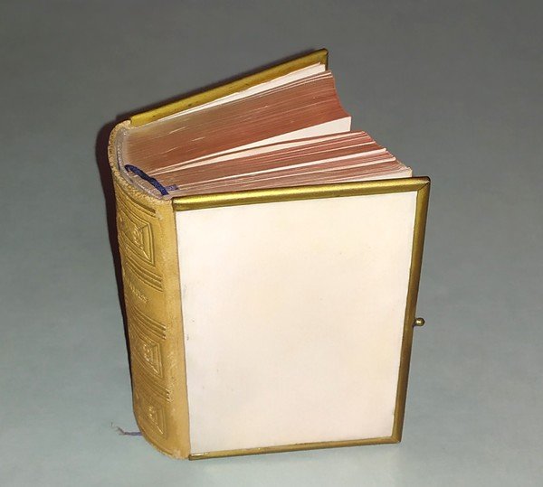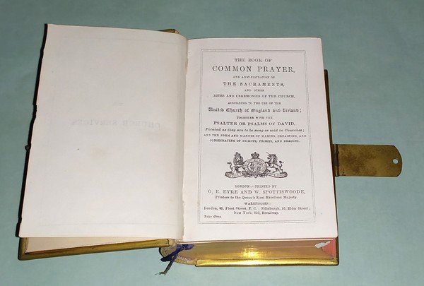 The Book of Common Prayer and administration of the sacraments and other rites and ceremonies of the church, according to the use of the United Church of England and Ireland: together with the Psalter or Psalms of David; and the form of making, ordaining and consecrating Bishops, Priests and Deacons. London, G. E. Eyre & W. Spottiswoode, s.a. Unito: Proper Lessons to be read at morning and prayer on the sundays and other holy days throughout the year. London, G. E. Eyre & W. Spottiswoode, 1865. In 24mo (cm.8x10). Mezza pelle coeva, titolo e ricchi fregi al dorso, tagli rossi. Piatti in avorio inquadrati da cornice in ottone, fermaglio.