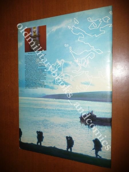 DESCRIZIONE: Ministry of Defence, London, 1983. In 4°, spillato ed. ill. a col., pp. 32 con molte foto a col. n.t., 1^ ediz. Volumetto in lingua inglese, pubblicato dalle forze armate britanniche a conclusione della breve guerra delle Falkland. Indice completo in foto. CONDIZIONI: Ottime. Piccole ammaccature agli spigoli. PESO / WEIGHT: 160 gr. without package