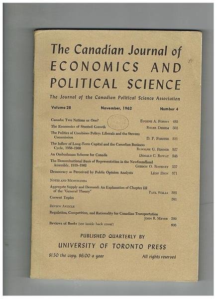 The Canadian Journal of Economics and Political Science, the Journal of the Canadian Political Science Association. Anno 1962 n° 1-4.
