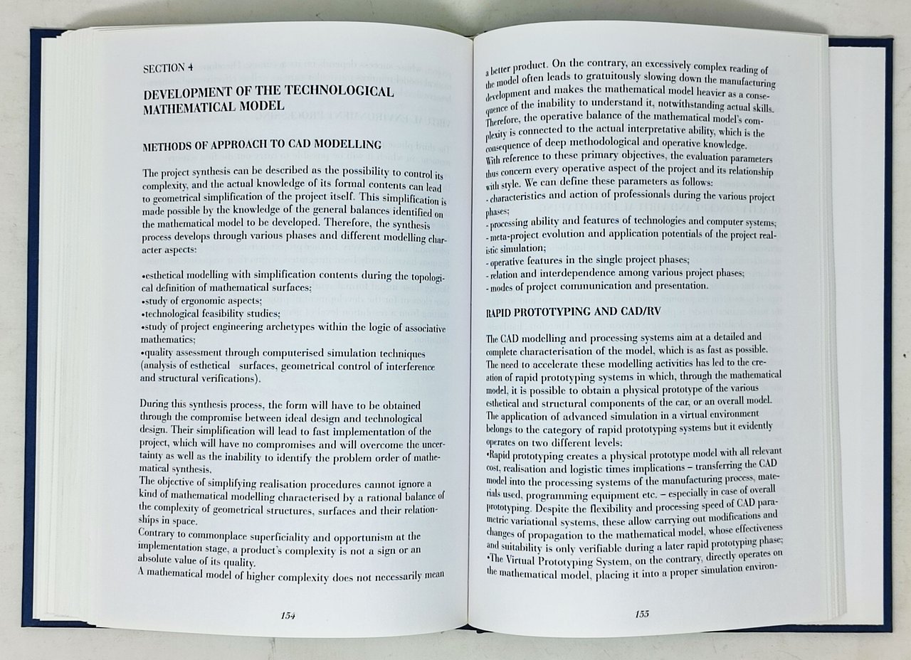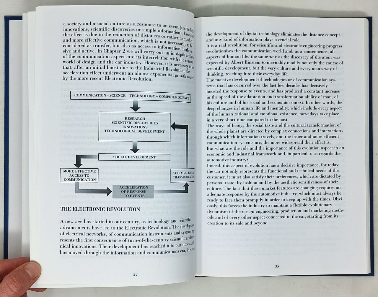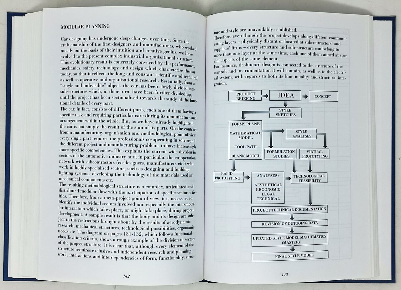 Lingua del testo: inglese. Formato: 17,5 x 25 cm circa. Ottimo esemplare. Indice delle grandi parti in cui è organizzato il testo dell'opera: 1- Design and the car; 2- Innovation; 3- Project Development; Glossary; Bibliography.
