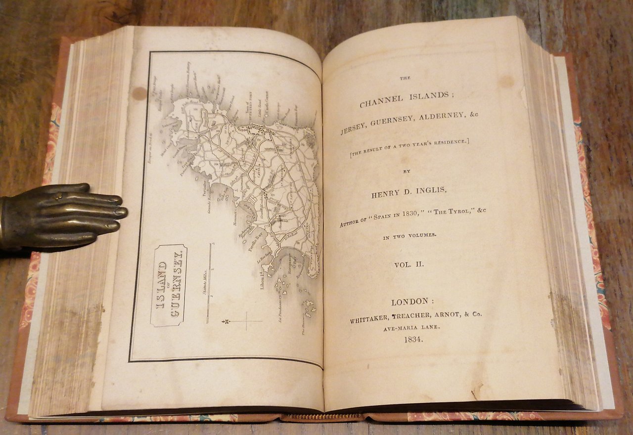 (Channel Islands; Iles Normandes; Isole anglo normanne; Canale della Manica) Due volumi riuniti in un tomo in 8°, legatura coeva in mezza pelle con punte, tassello al dorso con titoli in oro, tagli marmorizzati, pp. 300 ; 304, con due cartine geografiche (Island of Jersey, Island of Guernsey) poste in antiporta ai due frontespizi. Edizione originale di quest'opera dedicata alle isole dell'arcipelago situato nel Canale della Manica, al largo della costa della Normandia occidentale. Ottimo stato di conservazione.