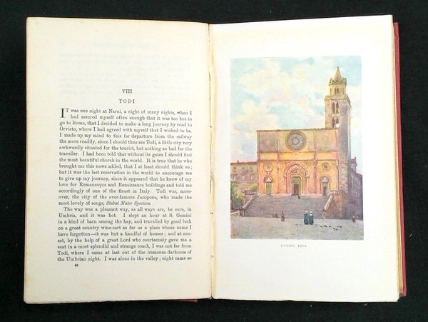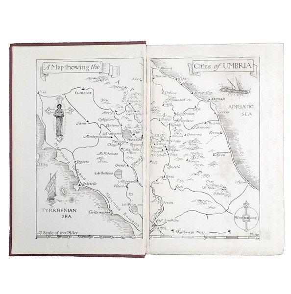 in-4° (188x120 mm); legatura in tela, titolo al dorso e al piatto, mappe stampate alle guardie; pp. 16, 336, 8, antiporta con immagine, frontespizio, indice, pubblicita' editoriale; il testo e' corredato da illustrazioni a colori e monocrome e una carta; testo in lingua inglese. Edizione n. 7, rara, di questa guida illustrata per la visita in Umbria, a cura dell'Hutton. Edward Hutton (1875-1969), scrittore inglese, fu l'autore di molti libri di viaggio e di vari testi riguardanti l'Italia, dove visse dal 1901 per la maggior parte della sua vita. Rif.: Edizione non censita in ICCU, che invece riporta altre ed. della stessa opera. OCLC, 561213567. Cond.: Opera completa in condizioni generali molto buone.