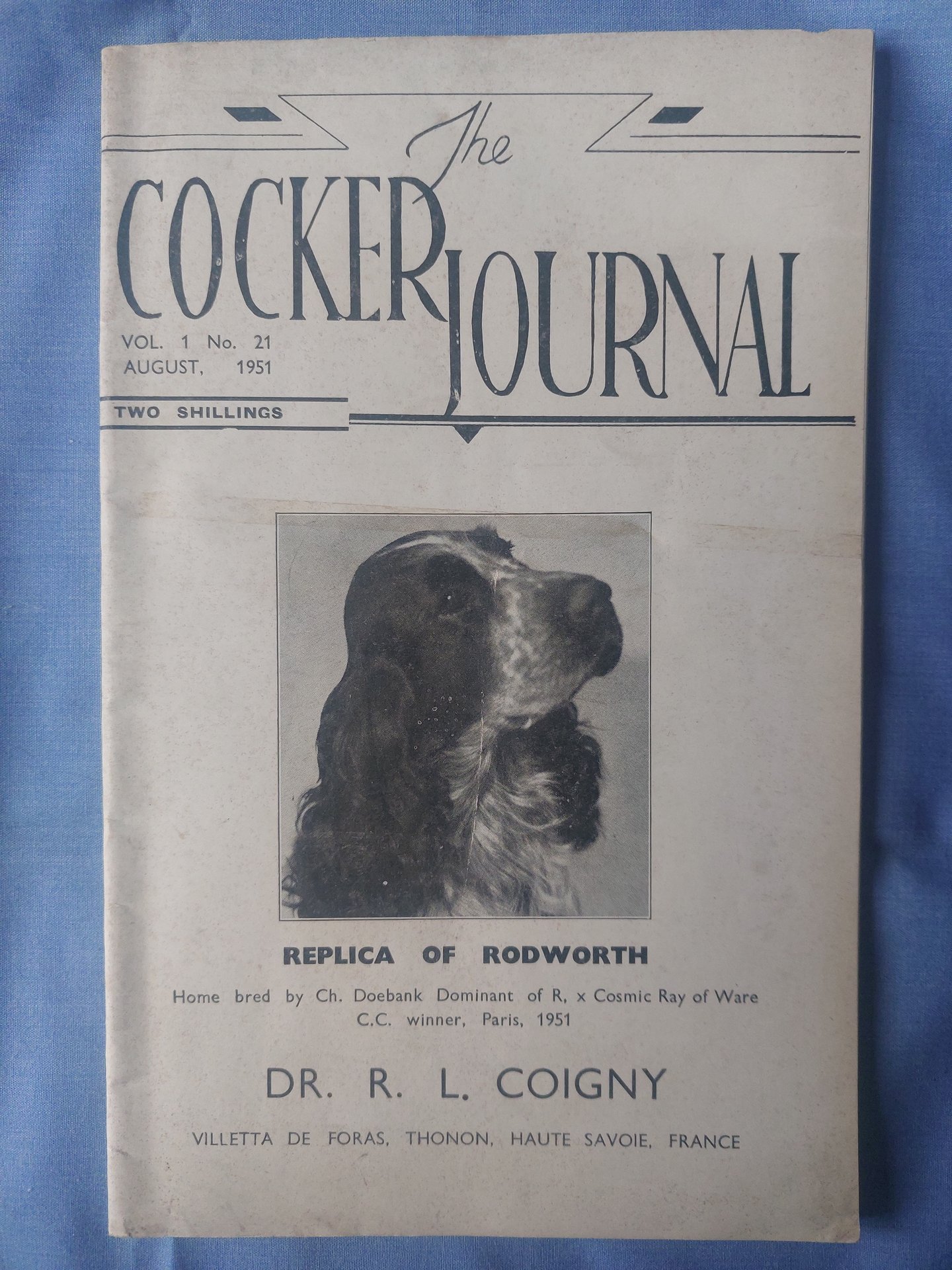 Circa 50 pp., ill. in & h.-t. N/B. Ce type de journal servait souvent de référence pour les éleveurs et les amateurs de la race, offrant des conseils sur la santé, l'entraînement et les standards de concours. En 1951, l'élevage de cockers était en plein essor, notamment aux États-Unis et en Europe. Le journal pouvait aussi inclure des articles sur les lignées prestigieuses et les expositions canines. Son contenu reflétait l'intérêt croissant pour les chiens de race après la Seconde Guerre mondiale.