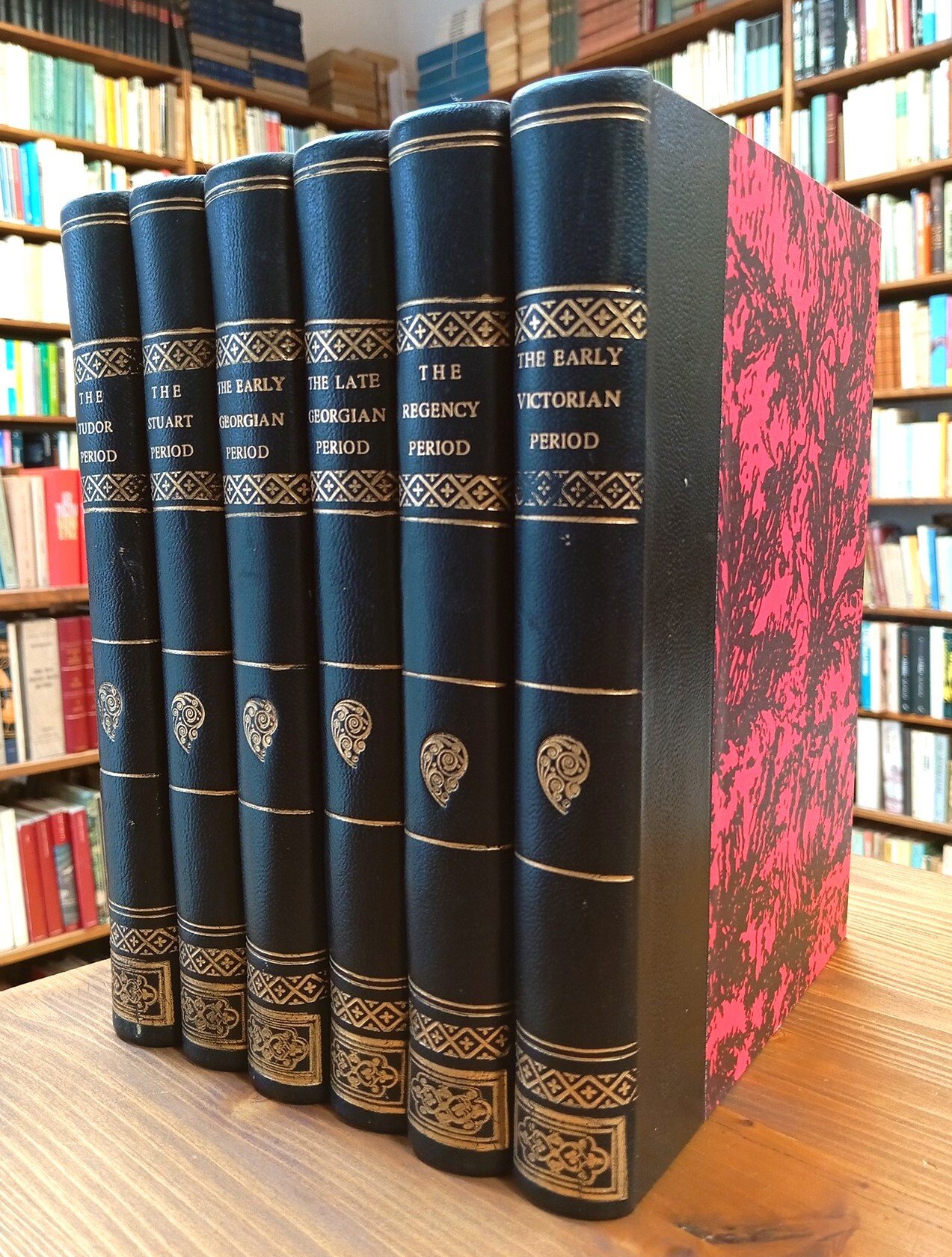 Opera completa di 6 volumi in legatura amatoriale a mezza pelle, carta marmorizzata ai piatti e alle sguardie, titoli in oro al dorso. VOL. 1: The Tudor Period, 1500-1603 (1956); VOL. 2: The Stuart Period, 1603-1714 (1957); VOL. 3: The Early Georgian Period, 1714-1760 (1957), VOL. 4: The Late Georgian Period, 1760-1810 (1961, ristampa), VOL. 5: The Regency Period, 1810-1830 (1958); VOL. 6: The Early Victorian Period, 1830-1860 (1958). Tutti i volumi, ampiamente illustrati in nero nel e fuori testo, sono in ottime condizioni; lotto da collezione.
