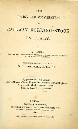 The design and construction of railway rolling-stock in Italy, by S. Fadda, chief of the Department for Preliminary Studies of Rolling Stock of the Upper Italy Railway. Translated and Abstracted by W. H. Thelwall, M. Inst. C. E.