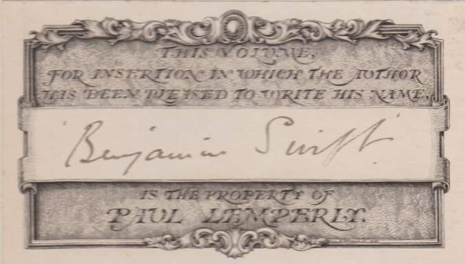 Spine a bit slanted. Boards with light rubbing to extremities; SIGNED by Swift, the English satirist, poet, political writer, and clergyman on tipped-in bookplate. Top edge gilt. Including contemporary letter on light blue "5 Cornwall Mansions" stationery, tipped-in to front endpaper; 8vo 8" - 9" tall; 266 pages