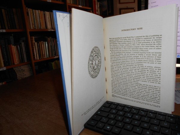 By DENIS I. DUVEEN. New York, H.P. Kraus, 1953. The Duveen Collection of Alchemy & Chemistry. Supplementing the Bibliotheca Alchemica et Chemica. Pert. I. Alchemy & Chemistry. Part. II. Balneology. Catalogue 62. In-8°, tela con titolo in oro al dorso, copertine originali conservate. (iv), 98, (1) pp. Ottimo stato di conservazione in tela con le brossure originali conservate. Neg. mob. rosso