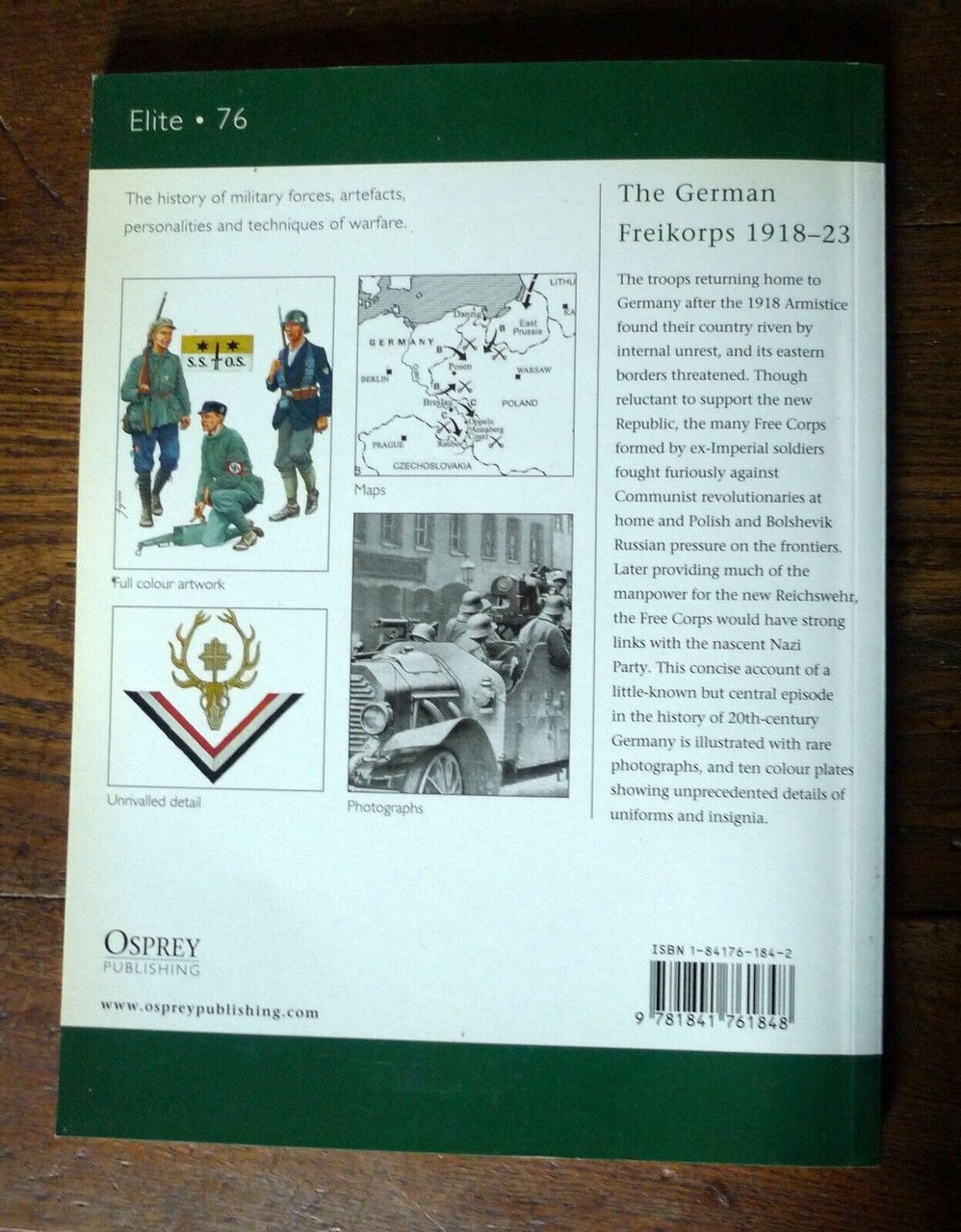 - Carlos Caballero Jurado,THE GERMAN FREIKORPS 1918-23.Illustrated by Ramiro Bujeiro.Osprey publishing, Oxford 2001, brossura, 25x18,5 cm., pp.64,illustrazioni in nero e a colori,serie ELITE n.76,testo in inglese,ISBN: 1 84176 184 2peso (con l'altro libro): g.700