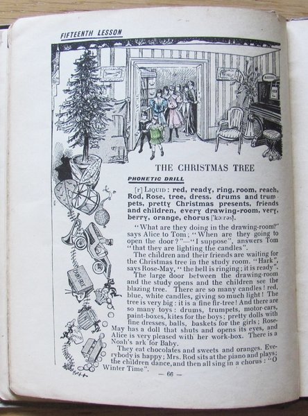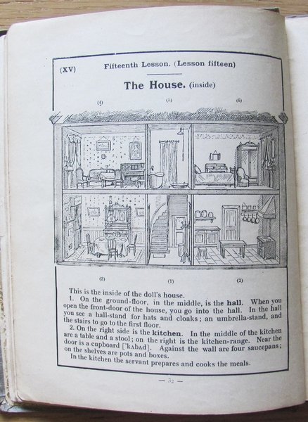 Nouvelle série pour l'Enseignement de l'Anglais dans les Etablissements de Jeunes Filles. Classes de Première année. Moltissime illustrazioni in b/n n.t. Editeur H. Didier - Paris, 1915. Tela editoriale. Taglio restaurato al frontespizio. Piccole spunte a matita a qualche pagina e disegnini all'ultima pagina bianca del libro. 17x21; pp.196. Edizione parigina per l?insegnamento della lingua Inglese ai Francesi. Buonissimo stato. ,