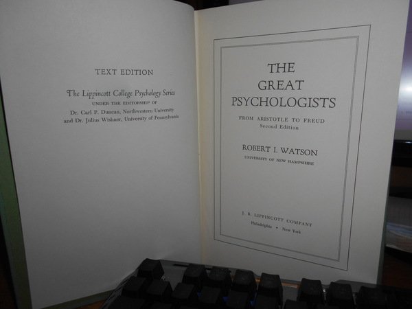 ROBERT I. WATSON. Philadelphia/New York, J.B. Lippincott, 1968. The Great Psychologist from Aristotele to Freud. In-8°, tela con titoli al dorso e sul piano. xiv, 613 pp. Come nuovo. Uff. C - IV - 2