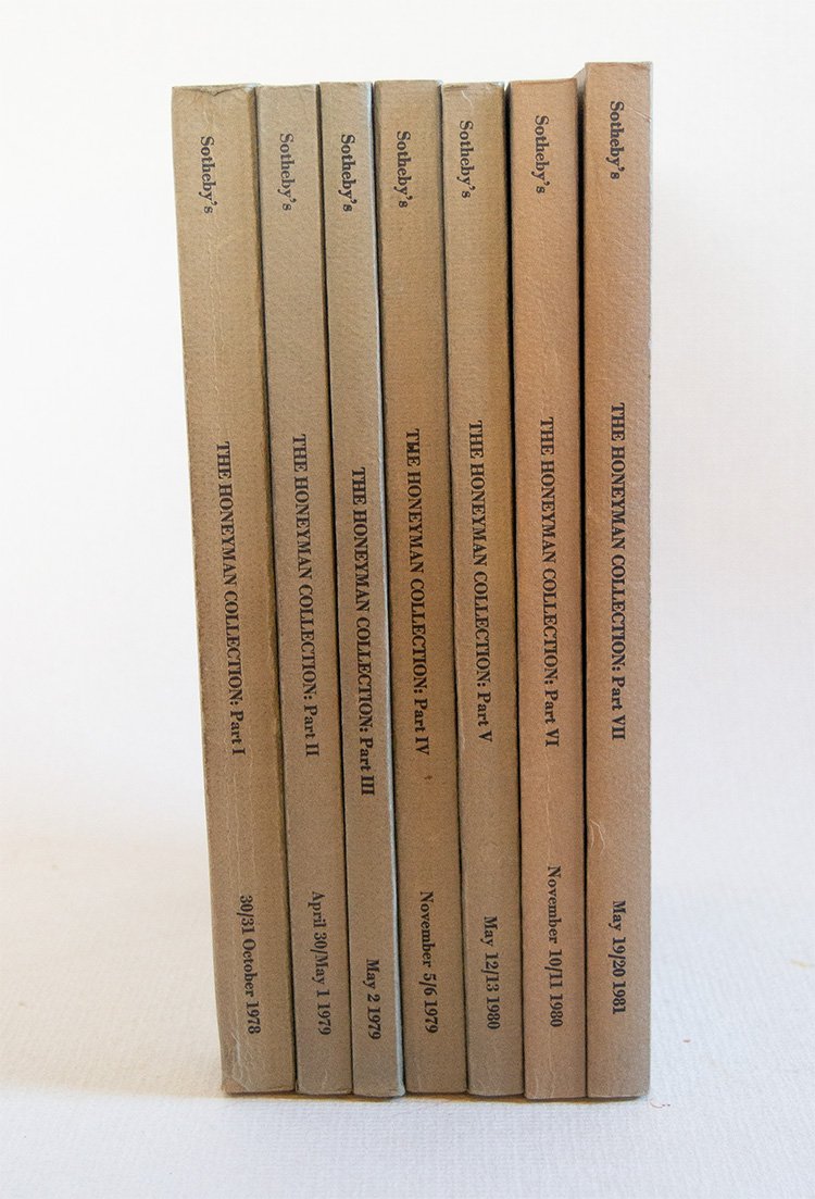 Cop. edit. Ottimo stato. 7 voll. Vol.1 Printed Books A - B, 560 libri descritti. Vol. 2 Printed Books C - E, 561-1083 libri descritti. Vol. 3 Manuscripts and Autograph Letters, 1084 - 1253 esemplari descritti. Vol. 4 Printed Books 1254 - 1774 esemplari descritti. Vol. 5 Printed Books K - M 1775 - 2284 esemplari descritti. Vol. 6 Printed Books N - Sa 2285 - 2768 esemplari descritti. Vol. 7 Printed Books Sc - Z e Addenda 2769 - 3309 esemplari descritti. Innumerevoli ill. in tutti i volumi. Ogni volume contiene stime e esiti delle vendite. Robert B. Honeyman, Jr. è stato un appassionato collezionista per tutta la vita. Ha raccolto in una varietà di aree tra cui arte, scienza, letteratura americana e inglese, francobolli, ordini britannici, decorazioni, medaglie e altro. La sua collezione di libri e manoscritti nella storia della scienza era molto significativa ed è stata offerta all'asta da Sotheby’s a Londra dal 1978 al 1981.