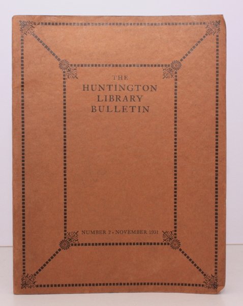 The Huntington Library Bulletin. Number 2. November 1931. REMARKABLY BRIGHT, CLEAN COPY
