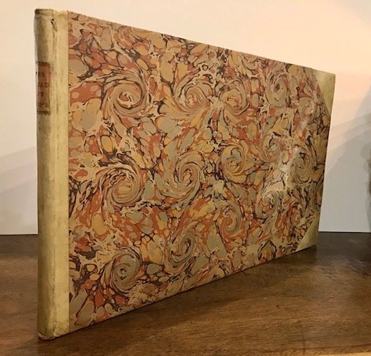 4to formato Album (cm. 26x40,5), 1 c.nn. (frontespizio calcografico) e 34 tavole incise su rame. Legatura coeva in mz. pergamena con angoli. Titolo oro su tassello dipinto al ds. Tagli colorati. Carte dei piatti e sguardie rinnovate. Minime ingialliture e qualche macchiolina, peraltro esemplare in ottimo stato di conservazione. Non comune.