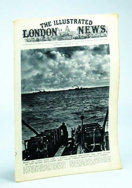 - The Illustrated London News, Saturday, March [Mar.] 29, 1941 - The Blitz Returns to London Corvette and coastal aircraft, protecting merchantmen, Two-page illustration of the Battle of the Atlantic - destroyer, escorting large convoy through German counter-blockade, Photo of Anthony Eden with General Sir John Dill and M., Sarajoglu of Turkey, One-page photo of smiling mother and children bombed out of, their London home, Photos of pitiful blitz victims on Clydeside, in the Port of Bristol, and in London, One-page comprehensive map of the campaign in East Africa -, cleaning up the remnants of Mussolini's East African Empire, Article entitled "The Greek Victory in Albania", Series of photos beneath caption "Yugoslavia Betrayed By Her, Politicians - The Principals Concerned" - includes photo of, Hitler with Prince Paul (in 1939), M. Tsvetkovitch, M. Matchek, Cincar-Markovitch and Ribbentrop, Fascist Bombing Fury - Salonika's 6th Century Cathedral Damaged, - six photos, Torpedoed in the Atlantic - a personal narrative and a tribute, by Katina Paxinou, Jarabub - where the garrison of 2000 surrendered on March 21 -, six photos, Centrefold illustration of Liberator bomber (with inset photo of, the plane), Two pages of photos show how U-Boats are built, Photos of night fighter squadron preparing for a 'party', Photos of the Eagle Squadron setting off on a patrol, Photos of American-donated clothing being distributed at the, dockland settlement, London, Photos of personalities of the week include Teneral Petit, Major G.P. Bulman, W.S. Farren, Air Commodore P. Huskinson, the King and Queen being welcomed by Lady Astor, Anthony J. Drexel Biddle and King Haakon, Colonel R.A. Bagnold, Dr. R.W. Macan, Professor Noel Hall, Sir Cyril Newall and Lady Newall, Aerial photos of R.A.F. bomb damage at Dunkirk and Le Havre, Two photos of Ernest Hemingway - in Spain during the civil war, with officers of the Republican Army and with Republican, soldiers during the battle of Teruel History Military Magazine, Back Issues