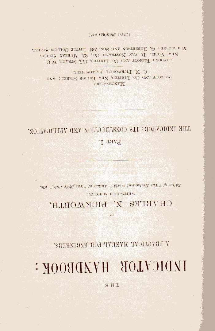 The indicator Handbook: A practical manual for engineers - Part I The indicator: Its construction and application