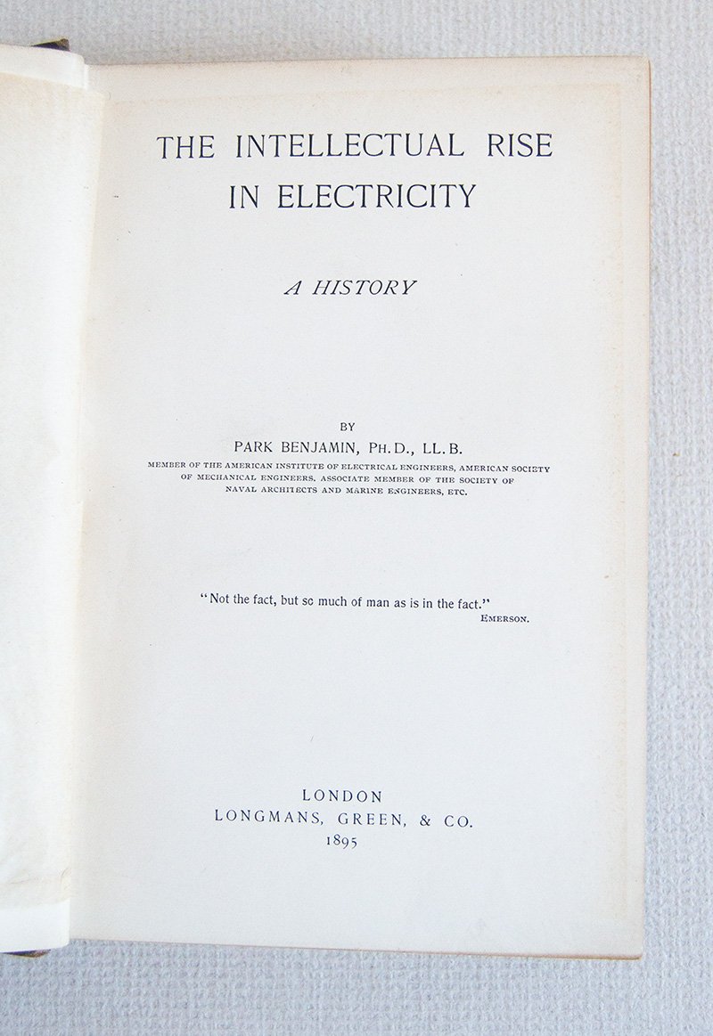 PRIMA EDIZIONE. Ritratto in antiporta, 611 pp. + 32 pp. di pubblicità. Numerose fig. n.t. Una storia dell'elettricità e del magnetismo dalle prime esplorazioni di questi fenomeni fino alla fine del XVIII secolo.