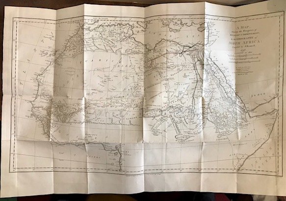 4to (cm. 26,5), IV pp., XXVI-188(1) pp. Con tre carte geografiche f.t. (di cui due, molto grandi, più volte ripiegate: ’The route of mr. Hornemann from Aegypt to Fezzan.’ e ‘A map showing the progress of discovery & improvement in the geography of North Africa.’). Legatura coeva in piena pelle con fili, fregi e titolo oro su tassello (rinnovato) al ds. Labbri decorati. Carte di guardia marmorizzate. Esemplare in eccellente stato di conservazione. Prima edizione in lingua inglese.