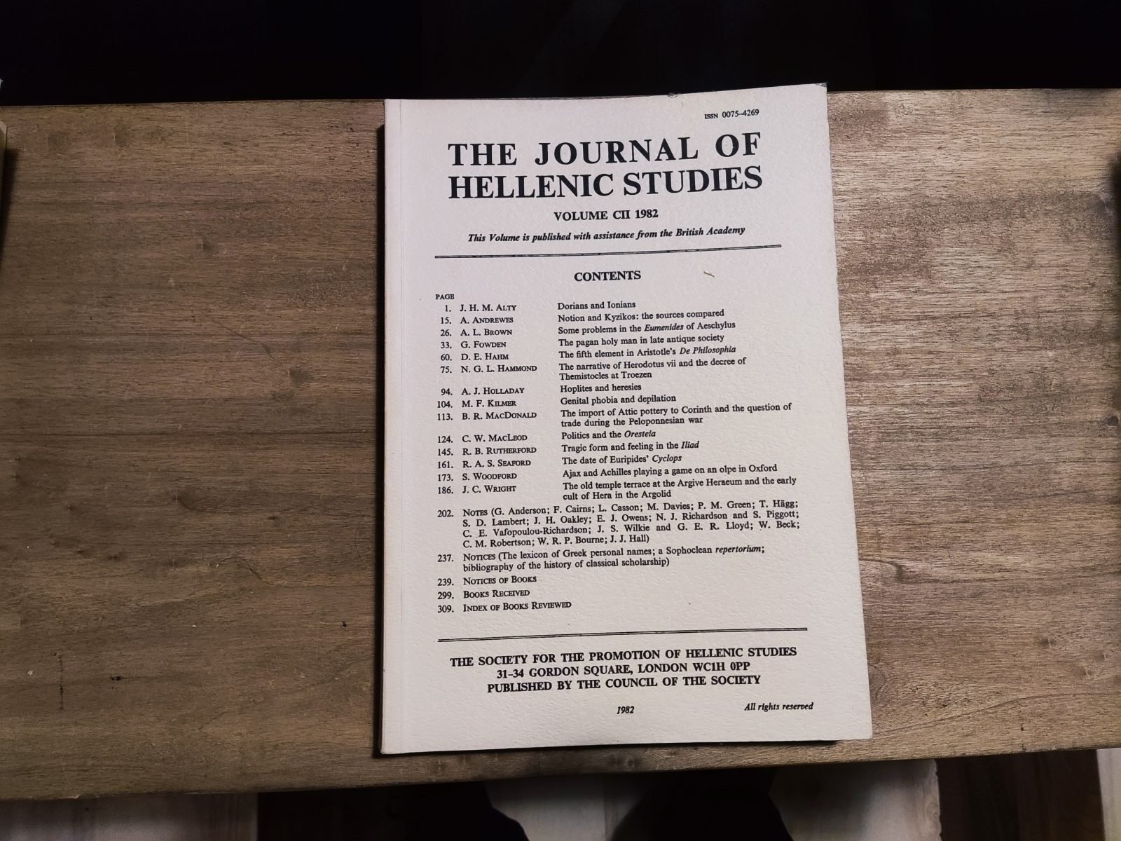 The Journal of Hellenic Studies Volume CII Society for the Promotion of Hellenic Studies - 1982 Volume in ottime condizioni, minimi segni del tempo. Non esitate a contattarci per altre foto o richieste. Saremo lieti di soddisfare ogni vostra esigenza.