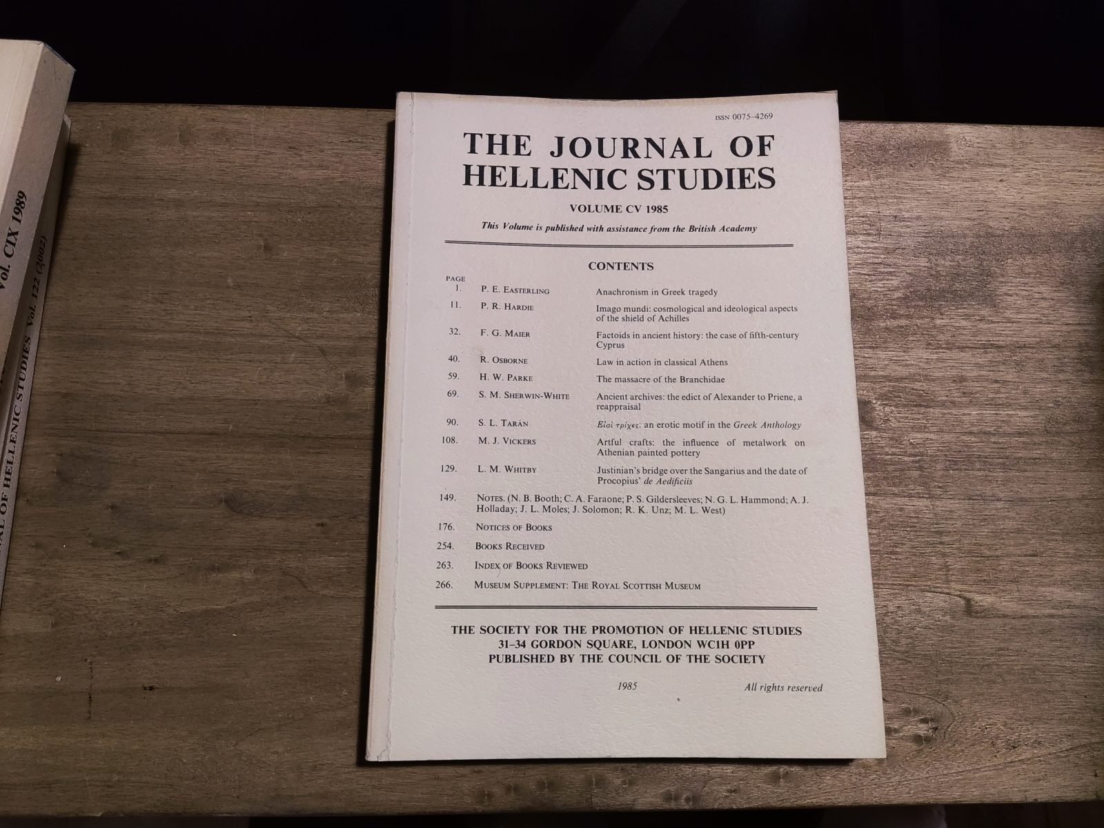The Journal of Hellenic Studies Volume CV Society for the Promotion of Hellenic Studies - 1985 Volume in ottime condizioni, minimi segni del tempo. Non esitate a contattarci per altre foto o richieste. Saremo lieti di soddisfare ogni vostra esigenza.