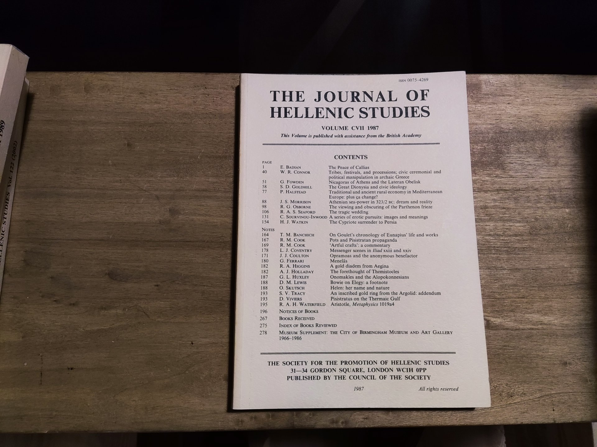 The Journal of Hellenic Studies Volume CVII Society for the Promotion of Hellenic Studies - 1987 Volume in ottime condizioni, minimi segni del tempo. Non esitate a contattarci per altre foto o richieste. Saremo lieti di soddisfare ogni vostra esigenza.