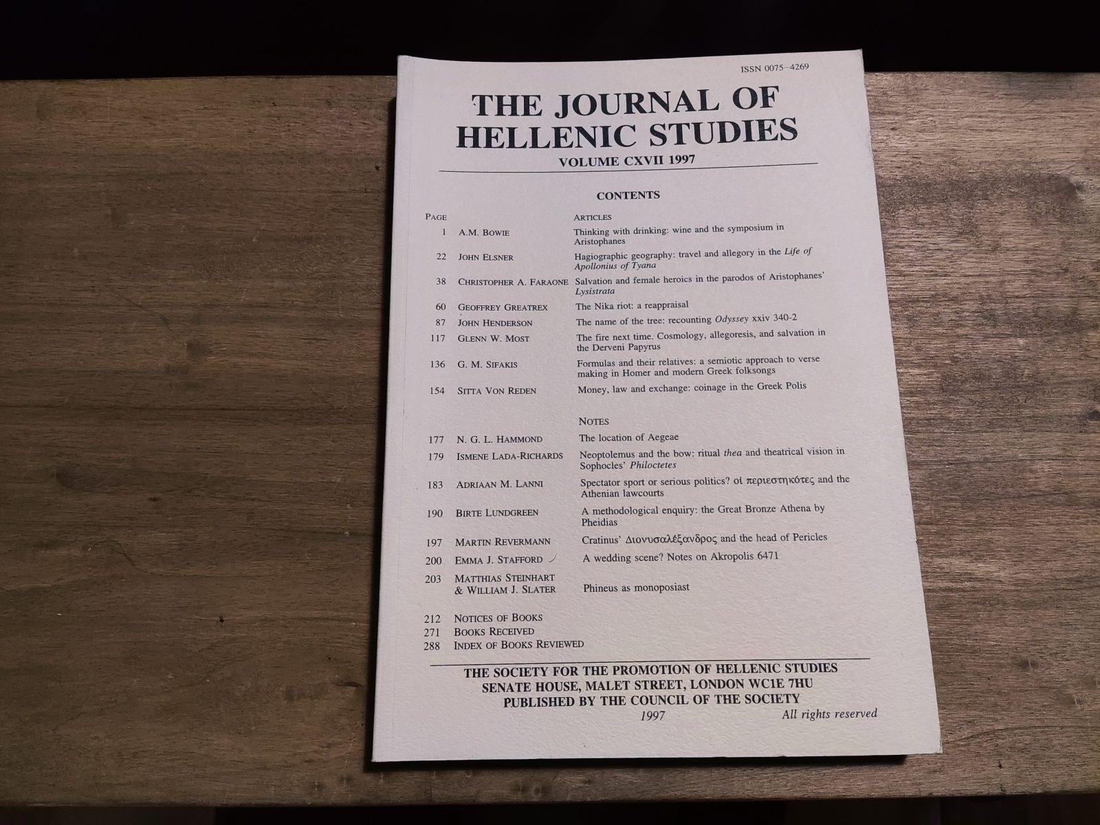 The Journal of Hellenic Studies Volume CXVII Society for the Promotion of Hellenic Studies - 1997 Volume in ottime condizioni, minimi segni del tempo. Non esitate a contattarci per altre foto o richieste. Saremo lieti di soddisfare ogni vostra esigenza.