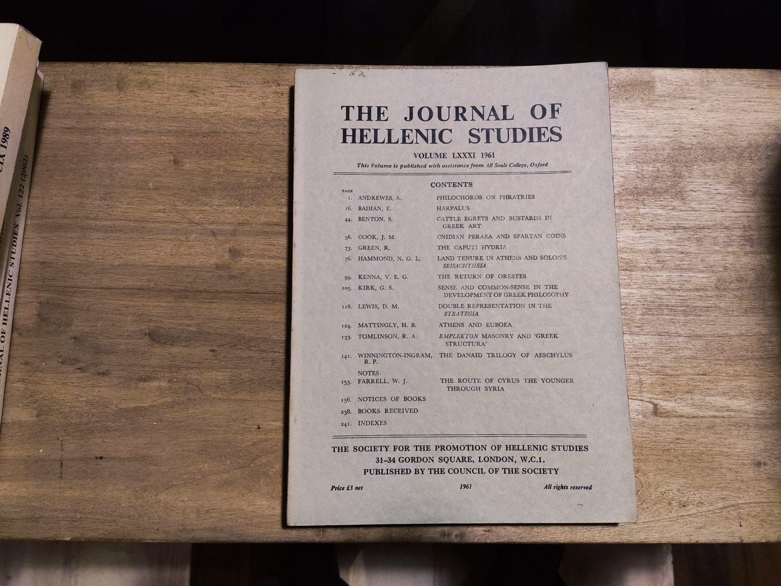Society for the Promotion of Hellenic Studies, 1961