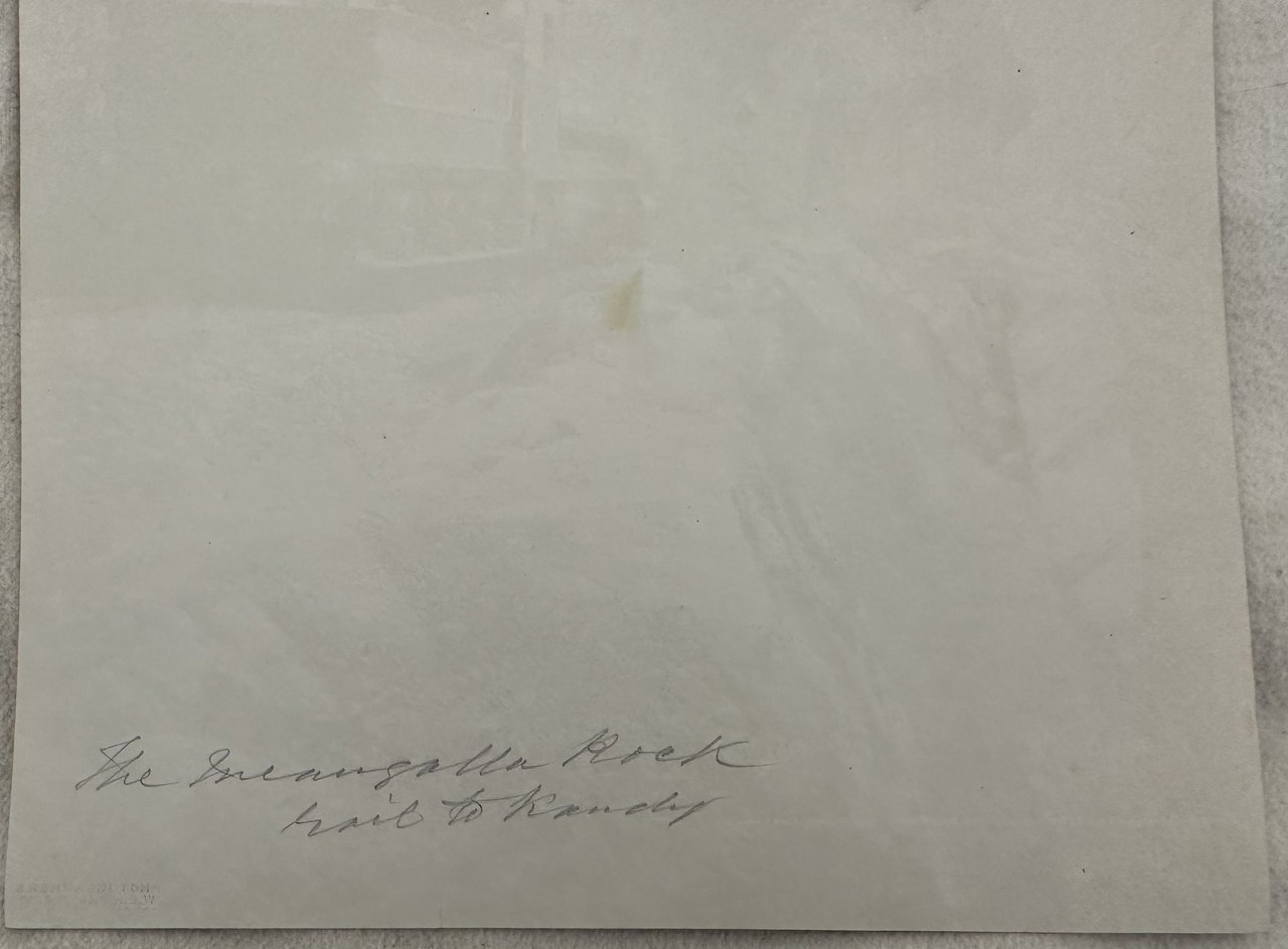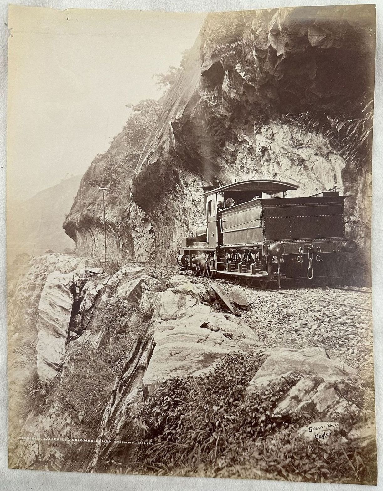 Fotografia all'albumina della ferrovia a Meangalla Rock in Sri Lanka (poi rinominata Ceylon) scattata dal fotografo William Louis Henry Skeen (1847-1903). Nota manoscritta al verso. Senza data ma di fine ottocento. Dim. Foto cm 27,5x21,5. Albumine photo of the frailway in Meangalla Rock in Sri Lanka (then renamed Ceylon) shot byt he photograph William Louis Henry Skeen (1847-1903). Handwritten note in the verso. Not dated but of late 19th century Dim. Foto cm 27,5x21,5