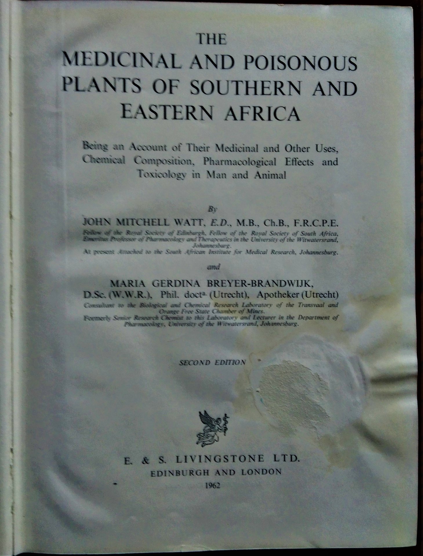 The Medicinal and Poisonous Plants of Southern and Eastern Africa: Being an Account of Their Medicinal and Other Uses, Chemical Composition, Pharmacological Effects and Toxicology in Man and Animal.
