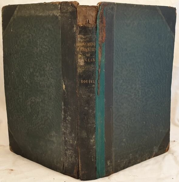 Edizione del 1849 di grandi dimensioni di questa celebre opera dell'archeologo inglese Charles Boutell noto per i suoi libri sulla cavalleria e per i monumenti funebri in rame, tipici delle cattedrali europee e inglesi. Parte descrittiva all'inizio dell'opera alla quale seguono circa 150 incisioni fuori testo che mostrano lastre funebri di Re, Arcivescovi, Cavalieri, Nobili e altre importanti figure del XIV e XV secolo. Lingua inglese. In buone condizioni e completa. Copertina in mezza pelle coeva con titolo e decorazioni in oro al dorso in mediocri condizioni generali con usure ai margini e dorso. Parte di stoffa attaccata al dorso. Legatura in buone condizioni . Pagine in buone condizioni con fioriture. In 4. Dim. 32x25,5 cm. Pp. 225 circa. Peso Kg. 4,300. Monumental edition of 1849 of this famous work by the english archeologist Charles Boutell known for his famous book on English heraldry and monumental brasses. Brasses, which are a form of engraving, were popular forms of memorials used by English and European cathedrals. Description at the beginning at the work then circa 150 out of text plates featuring monumental brasses of Kings, Archibyshops, Knights, Nobles and other important figures of 14th and 15th century. English language. In good conditions and complete. Half leather coeval cover with golden title in the spine and plates in poor general conditions damaged in the extremities. Part of cloth attached in the spine. Binding in good conditions. Pages are in good conditions with foxings. In 4. Dim. 32x25,5 cm. Pp. 225 circa. Weight Kg. 4,300.