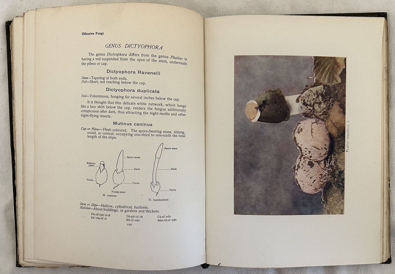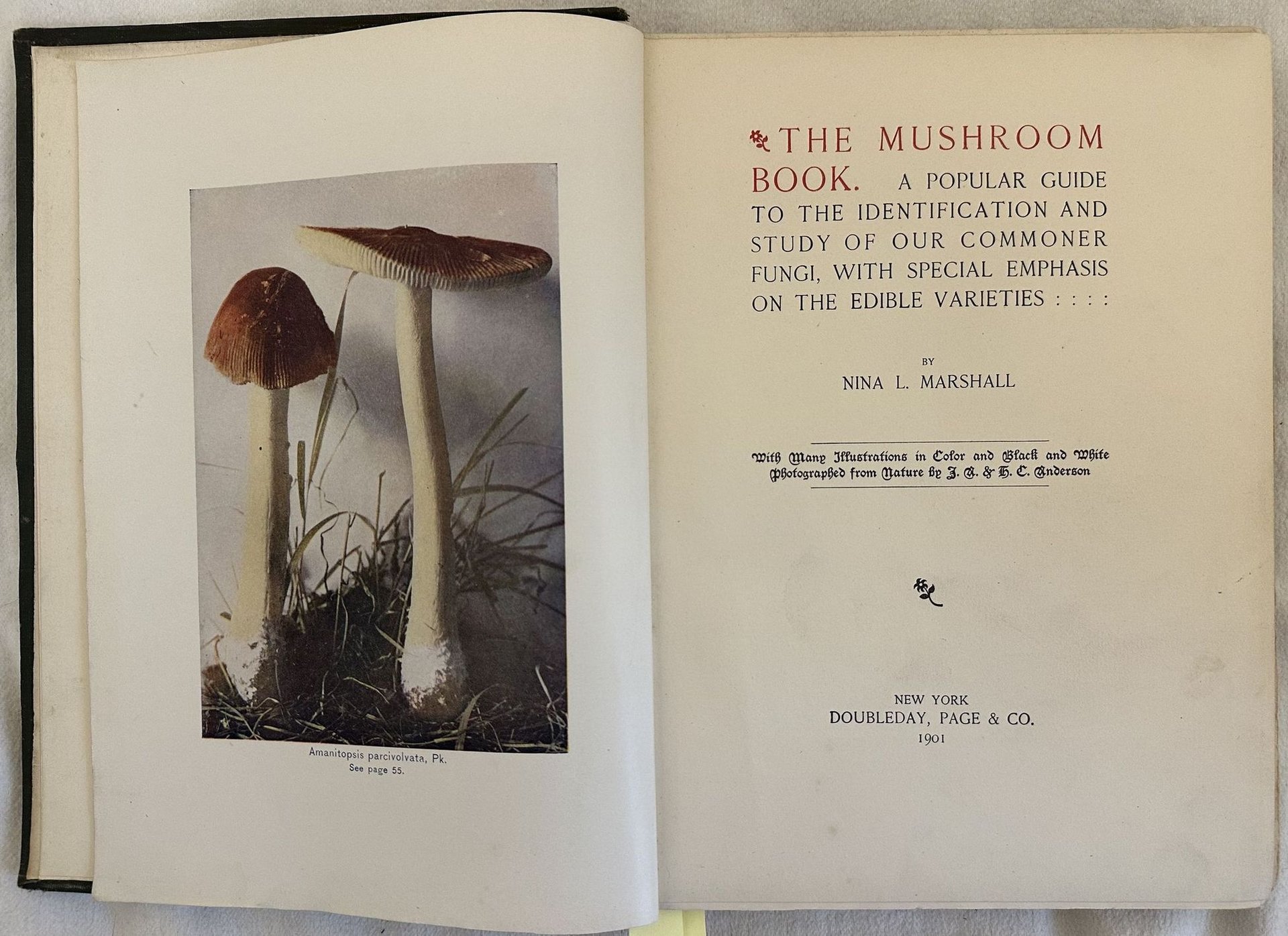 Interessante manaule del 1901 per l'identificazione e lo studio dei funghi più comuni funghi scritto da Nina Marshall.<BR><BR>All'interno numerose illustrazioni e foto a colori fuori testo e in bianco e nero di Anderson.<BR><BR>Ogni specie ampiamente descritta con anche indicazione dell'habitat.<BR><BR>In buone condizioni.<BR><BR>Copertina in tela editoriale in discrete condizioni con usure e mancanze marginali. Legatura in buone condizioni. All'interno le pagine si presentano in buone condizioni con rare fioriture. In 8. Dim. 26x20 cm. Pp. XXVI+167.Interesting manual of 1901 for the identification and study of the most common mushrooms written by Nina Marshall.<BR><BR>Inside different illustrations and coloured and black and white plates by Anderson.<BR><BR>Each species is widely described with inbdication of the habitat.<BR><BR>In good conditions.<BR><BR> <BR><BR>Cloth editorial cover in fair conditions with wearings and lackings in the extremities. Binding in good conditions. Inside pages are in good conditions with occasional foxing. In 8. Dim. 26x20 cm. Pp. XXVI+167.