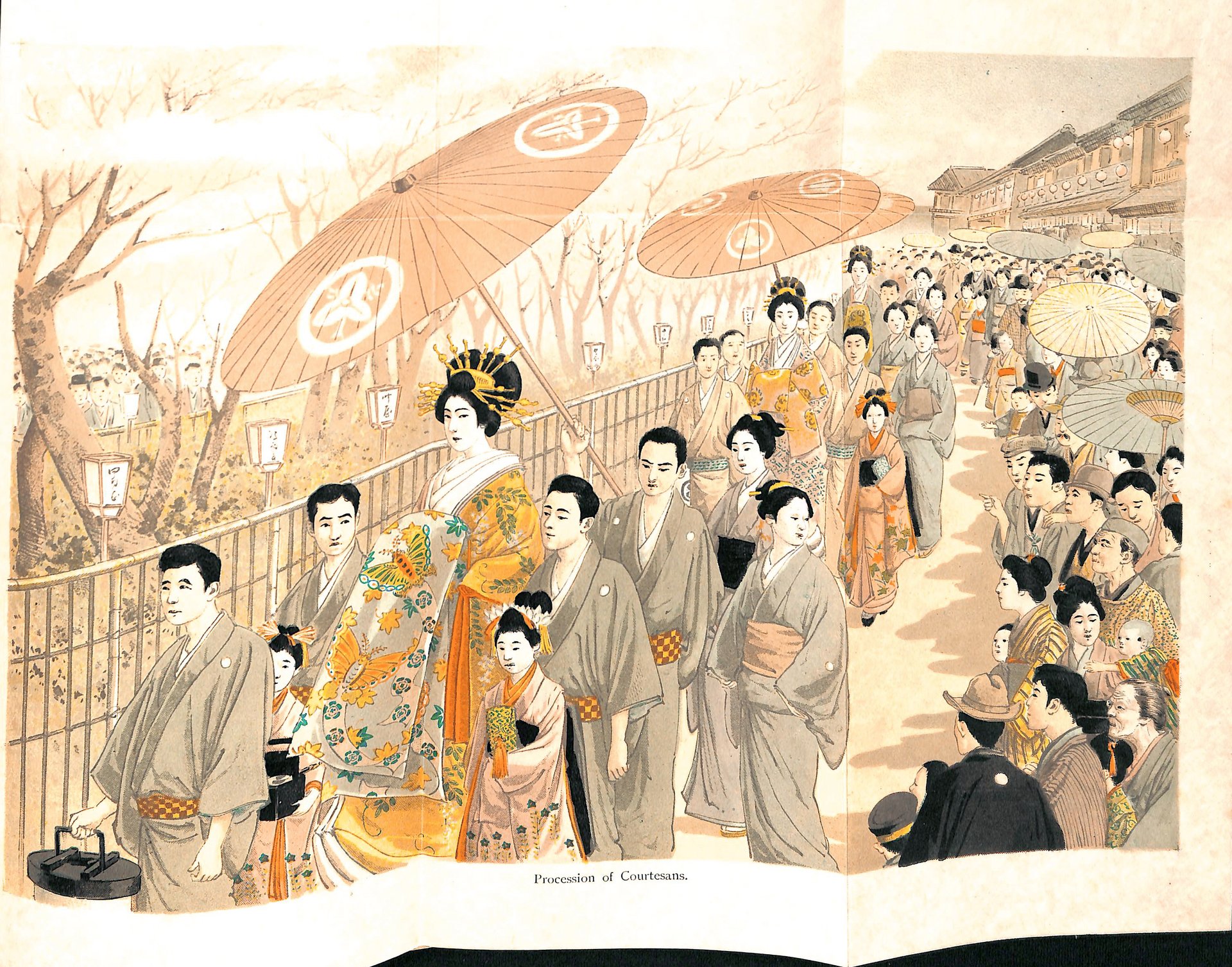 (Prostituzione-Giappone-Fig. 800) (DE BECKER Joseph Ernest ) The Nightless City. Or the History of the Yoshiwara Y kwaku. With nomerous illustrations. Yokoama, Z. P. Maruya, 1899. In-8°, elegante legatura originale in piena tela figurata; pp. (8)-VI-442+XIX (Appendix)+ 4 (Kappore Dance set to foreign music). Con 19 tavole (su 20) di cui otto a colori, ripiegate che sono particolarmente belle. Il lavoro descrive case da The, Classi delle prostitute, Abiti, Acconciature, Incantesimi e servizi, Musica e danze, Contatti e Ispezioni mediche. Le ultime sei paginecontengono Kappore Dance che fu censurato in molte copie e spesso manca. Purtroppo manca una tavola (pag. 145). Rarissima prima edizione di questo studio sui quartieri a luci rossedelle geishe a Tokio. 400,00