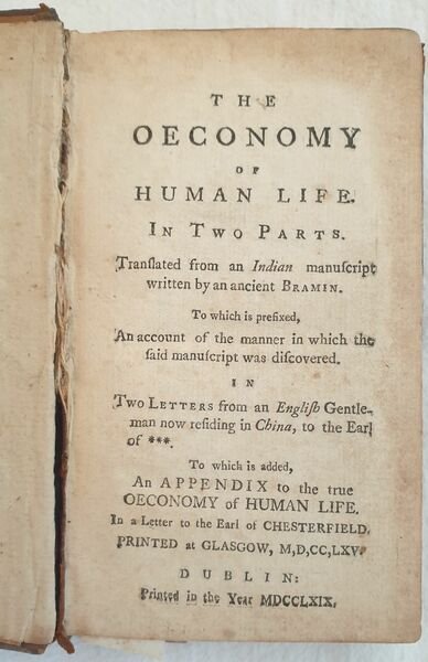 THE OECONOMY OF HUMAN LIFE TRANSLATED FROM THE INDIAN MANUSCRIPT WRITTEN BY AN ANCIENT BRAMIN