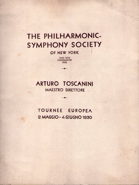 *The philharmonic symphony society of New York 1842 - 1878 consolidated 1928. Arturo Toscanini maestro direttore. Tournee europea 2 maggio - 4 giugno 1930.