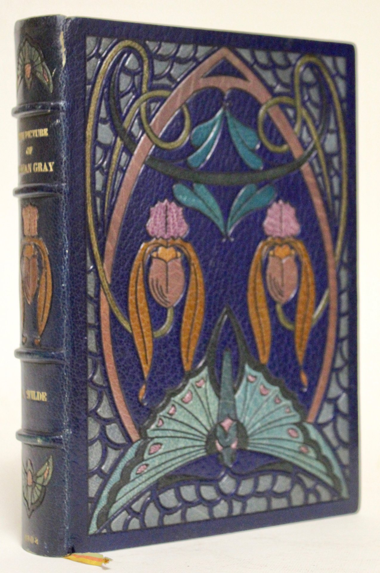 In 8° (mm 220x155); pagg. 361, (1). Edizione limitata a 1000 copie su carta fatta a mano. Legatura d'amatore ricercata ed elegante, firmata da Fluchaire in oro all'interno del piatto ant.; piena pelle blu e intarsi in stile floreale in pelle verde, rosa melanzana e nocciola con fiori e libellule ai piatti e al dorso con quattro nervi e titoli in oro, sguardie in seta blu e 5 cornici concentriche dorate, dentelle con doppio filetto dorato. Magnifico esemplare con legatura mosaicata e firmata, un bellissimo esempio dell'arte della rilegatura liberty di inizio secolo. Pubblicato dapprincipio in una versione più breve come racconto sul numero di luglio 1890 del periodico americano Lippincott's Monthly Magazine, la versione in formato romanzo fu pubblicata nell'aprile 1891. La storia ruota attorno a un ritratto di Dorian Gray, dipinto da Basil Hallward, amico di Dorian e artista infatuato della bellezza eccezionale di Dorian. Attraverso Basil, Dorian incontra Lord Henry Wotton e rimane presto affascinato dalla visione edonistica del mondo enunciata dall'aristocratico, secondo il quale la bellezza e l'appagamento sensuale sono le uniche cose che valgono la pena di perseguire nella vita. Comprendendo che la propria bellezza svanirà, Dorian esprime il desiderio di vendere la sua anima, per garantire che l'immagine dipinta, piuttosto che il proprio corpo, invecchierà e svanirà. Il desiderio è esaudito e Dorian persegue una vita libertina fatta di varie esperienze amorali pur rimanendo negli anni sempre giovane e bello; nel frattempo, il suo ritratto invecchia e registra visivamente tutti i peccati di Dorian.<BR>Il ritratto di Dorian Gray (The Picture of Dorian Gray) si configura come un eccellente capolavoro della letteratura gotica inglese e come una vera e propria celebrazione del culto della bellezza.<BR><BR>