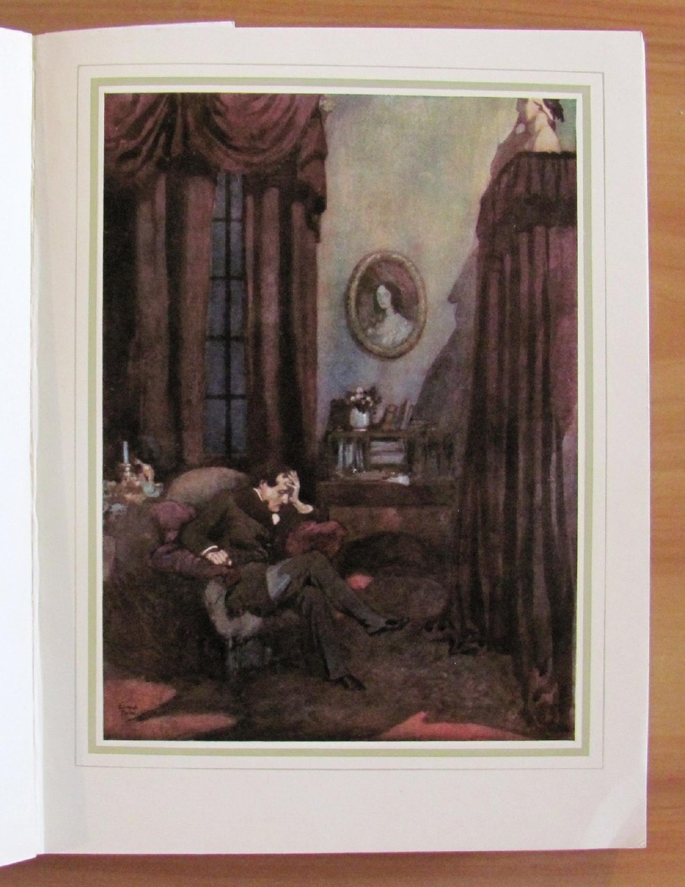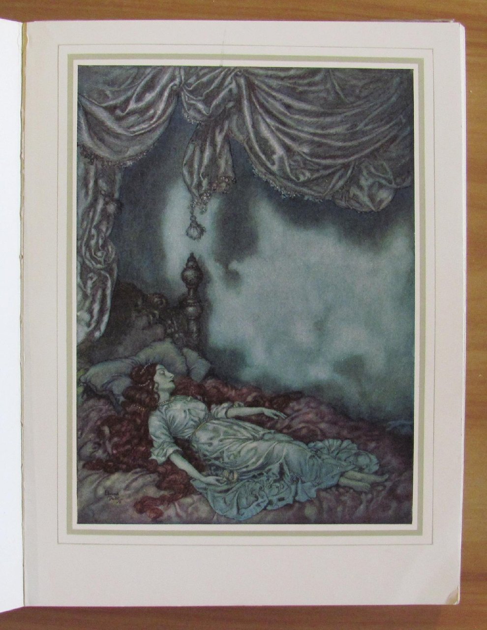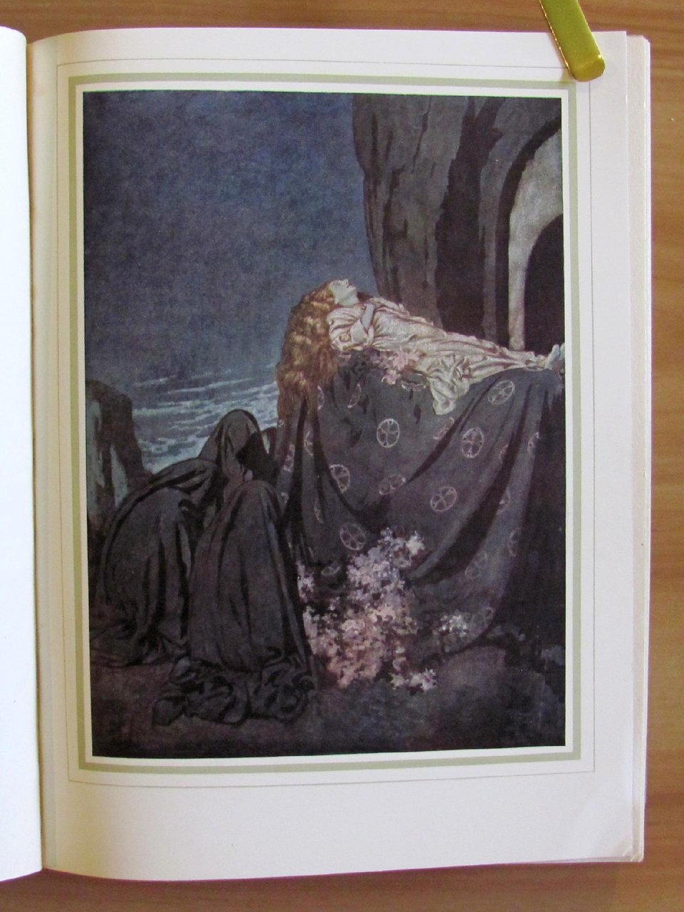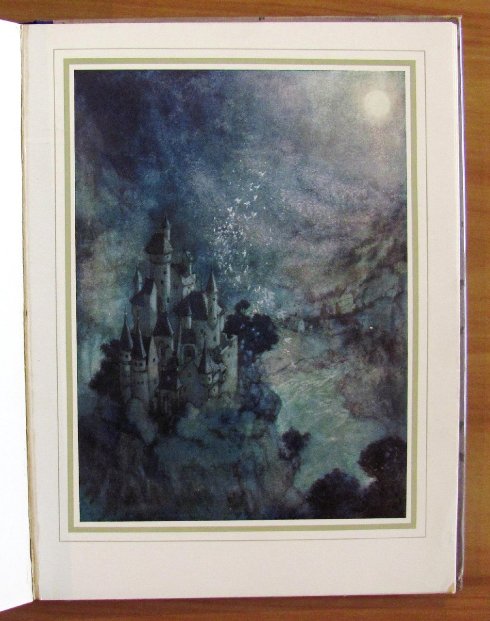28 splendide tavole f.t., in cornice dorata del grande Edmund Dulac. Ed. George H. Doran Co. - New York, I edizione americana s.d. 1915 ca. Cartonato editoriale con dorso in tela originale con titoli in oro al piatto e al dorso. Sovraccoperta acetata trasparente con taglietti e mancanze. Minima imperfezione degli angolini bassi esterni della copertina. Esemplare freschissimo. 19x25,5; pp.192. Raro e in Ottimo stato. , Ottimo (Fine)