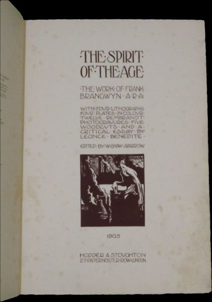 The spirit of the age, the work of Frank Brangwyn, with four lithographs, four plates in colour, twelve Rembrandt photogravures, five woodcuts, and a critical essay, by Léonce Bénédite; edited by W. Shaw Sparrow