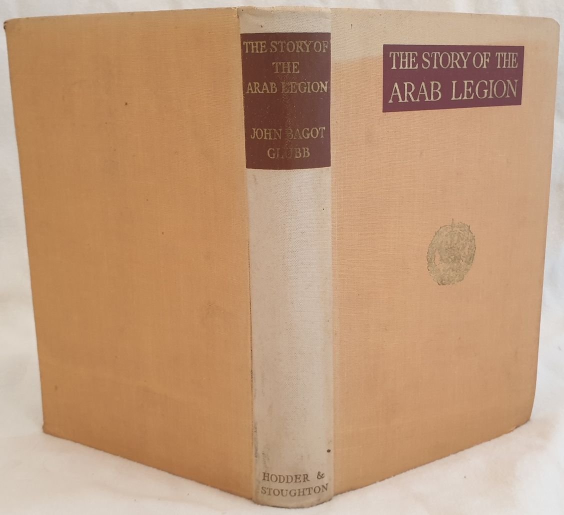 Prima edizione del 1948 di questa opera sulla storia della legione araba scritto dal Brigadiere John Bagot Glubb che comandò la legione araba dal 1939 al 1956 quindi testimone diretto dei paesi arabi durante la guerra. All'interno numerose planches in bianco e nero che mostrano vedute e persone (Tubaiq mountains, Stone fort of Kaf, Desert Patrol fort at Mudawara, ruins of Jerash, Ammam, Desert fort at Rum, Ruins of Jerash, Petra, Euphrates, Palmyra ecc. Alcune mappe. In ottime condizioni. Copertina in tela editoriale in buone condizioni generali con lievi usure ai margini e dorso. Scoloriture. Legatura in buone condizioni. Pagine in ottime condizioni con rare fioriture. In 8. 230 x 155 mm. Pp. 371+(1). First edition of 1948 of this work about the history of of arab legion written by Captain John Bagot Glubb who commanded arab legion from 1939 to 1956 since a direct witness of Arabia during World war. Inside different black and white photos featuring views and people (Tubaiq mountains, Stone fort of Kaf, Desert Patrol fort at Mudawara, ruins of Jerash, Ammam, Desert fort at Rum, Ruins of Jerash, Petra, Euphrates, Palmyra ecc.). Some maps. In very good conditions. Editorial cloth cover in good conditions lightly worn in the extremities. Discoloring. Binding in good conditions. Pages in very good conditions with occasional foxings. In 8. 230 x 155 mm. Pp. 371+(1).