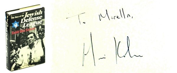 Signed and briefly inscribed by Kahane upon front free endpaper. xii, 338 pages. Index. "The inside story, by its founder, of the militant organization determined to defend Jews in whatever manner necessary." - dust jacket. "I am not ashamed to admit it. I do not understand the Jew. I am at a loss to understand a man so clever in business, so keen in science, so intellectually bright in debate - and so incredibly stupid when it comes to saving himself." - dust jacket. Book tight and square with moderate wear and bump to upper corner of front board. Average wear to dust jacket which is now preserved in archival-grade Brodart. Book