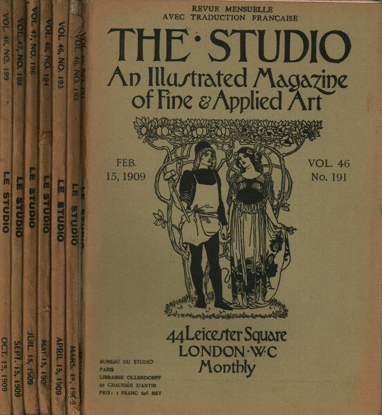 The Studio annata 1909 (6 fascicoli): vol. 46 n. 192 marzo, vol. 46 n. 193 aprile, vol. 46 n. 194 maggio, vol. 47 n. 196 luglio, vol. 47 n. 198 settembre, vol. 48 n. 199 ottobre