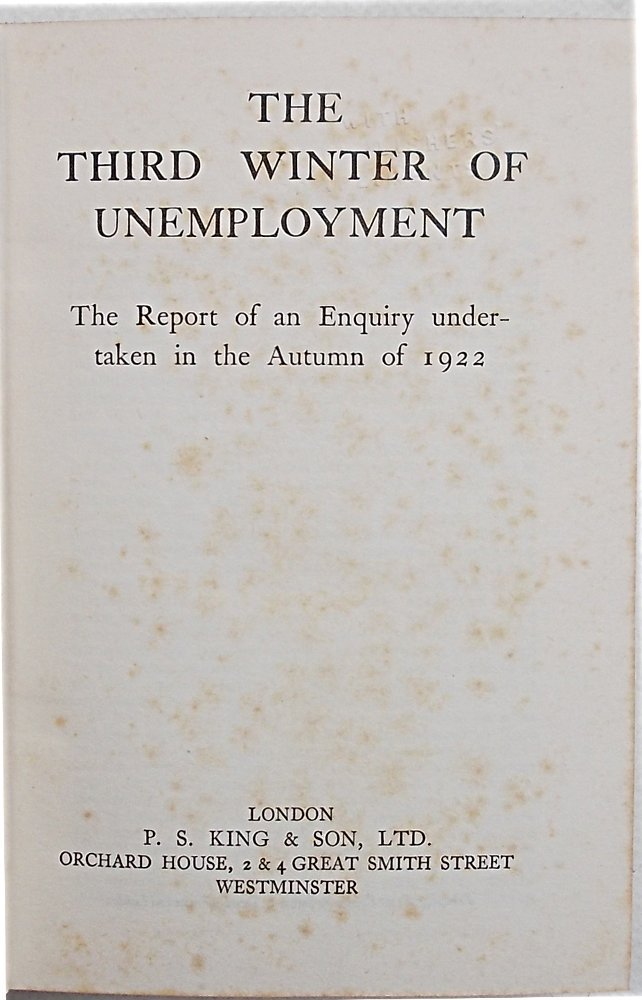 The third winter of unemployment. The report of an Enquiry under-taken in the Autumn of 1922.