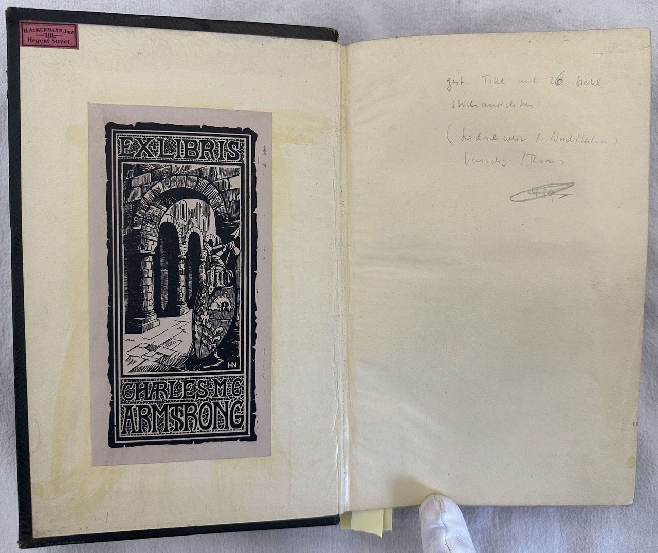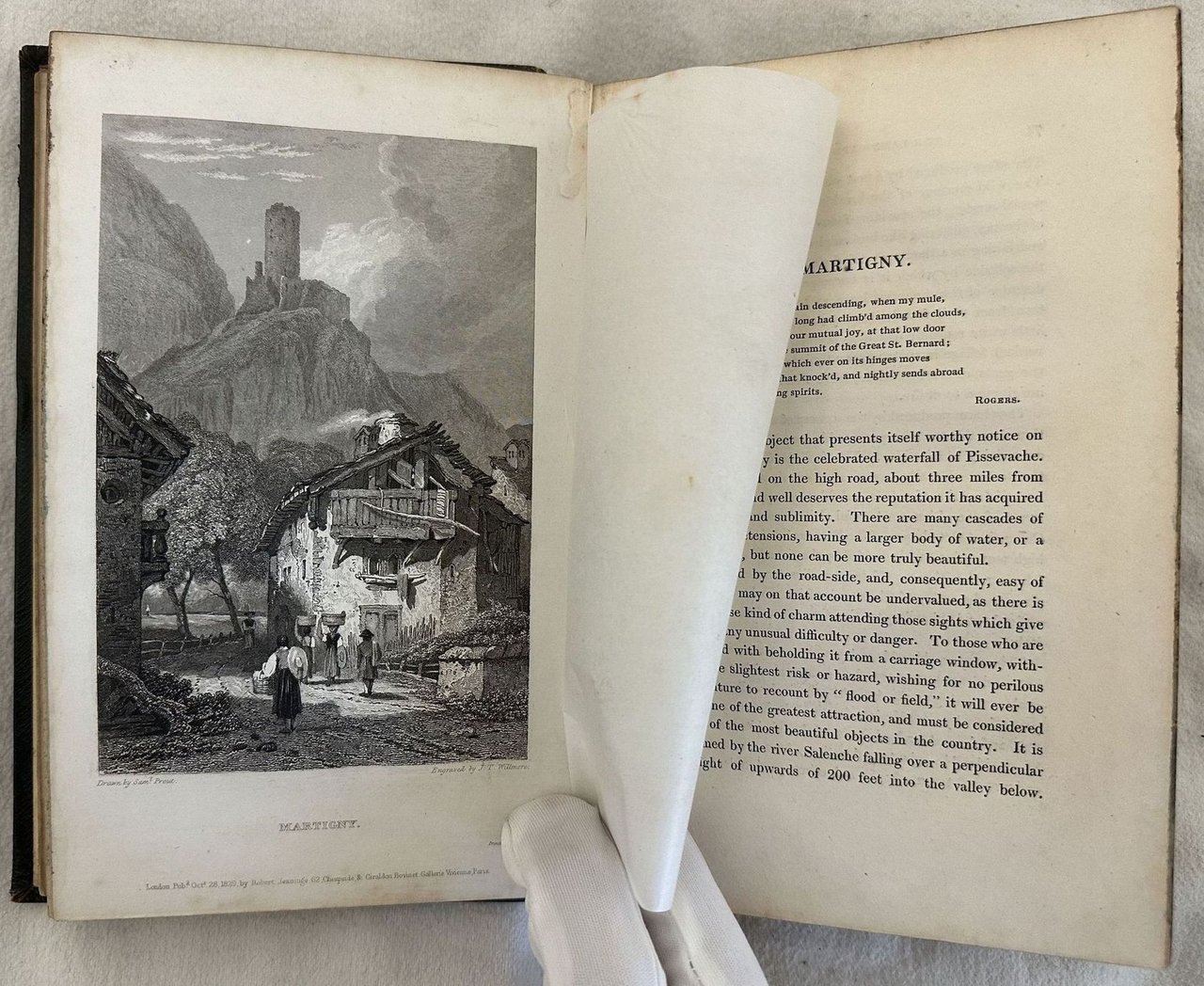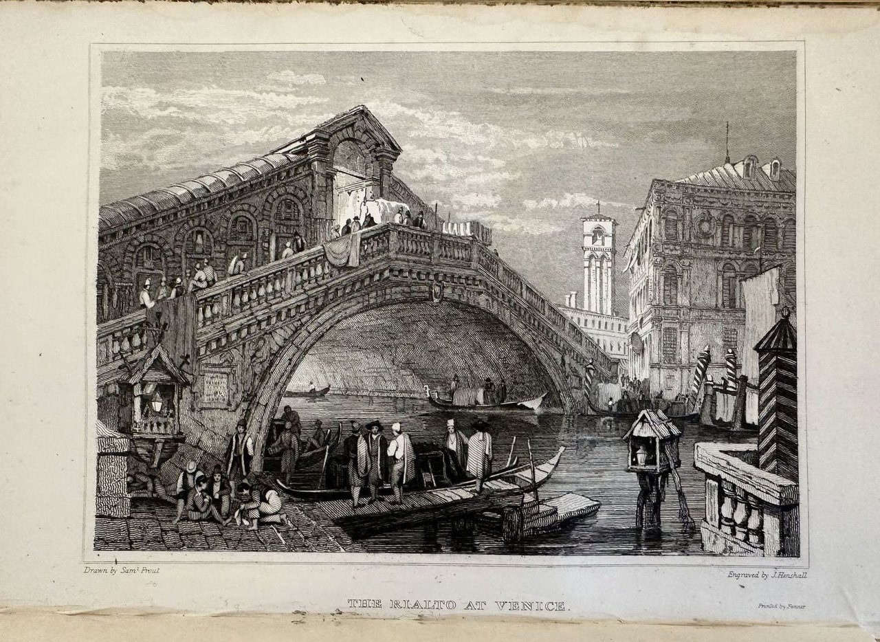 Prima edizione del 1830 di questa opera di viaggio dalla Svizzera fino al centro Italia scritta da Thomas Roscoe. All'interno 25 vedute da disegni di Samuel Prout (1783-1852), uno dei maestri dell'architettura dipinta ad acquerello tra cui: Como, Ginevra, Losanna, Lavey, Saint Maurice, Sion, Martigny, Domodossola, Milano, Como, Verona, Vicenza, Padova, Arqua, Venezia, Ferrara, Bologna, Roma ec. Ex libris al contropiatto anteriore di Charles Armstrong. In ottime condizioni. Copertina in pelle editoriale con titolo in oro al dorso in buone condizioni con lievi usure marginali. Legatura in buone condizioni. Pagine in ottime condizioni con rare fioriture. In barbe. In 8. cm 20,5x13,5. Pp. (16)+278+(2).First edition of 1830 of this work of travel from Switzerland to the centre of Italy by Thomas Roscoe. Inside 25 views from drawings by Samuel Prout (1783-1852), one of the masters of architecture painted with aquarello apinting as: Como, Ginevra, Losanna, Lavey, Saint Maurice, Sion, Martigny, Domodossola, Milano, Como, Verona, Vicenza, Padova, Arqua, Venezia, Ferrara, Bologna, Roma ec.<BR><BR>Ex libris in the front counterplate by Charles Armstrong. In very good conditions. Editorial leather cover with gilted title in the spine in good conditions lightly worn in the extremities. Binding in good conditions. Pages in very good conditions with occasional foxing. In barbe. In 8. cm 20,5x13,5. Pp. (16)+278+(2).