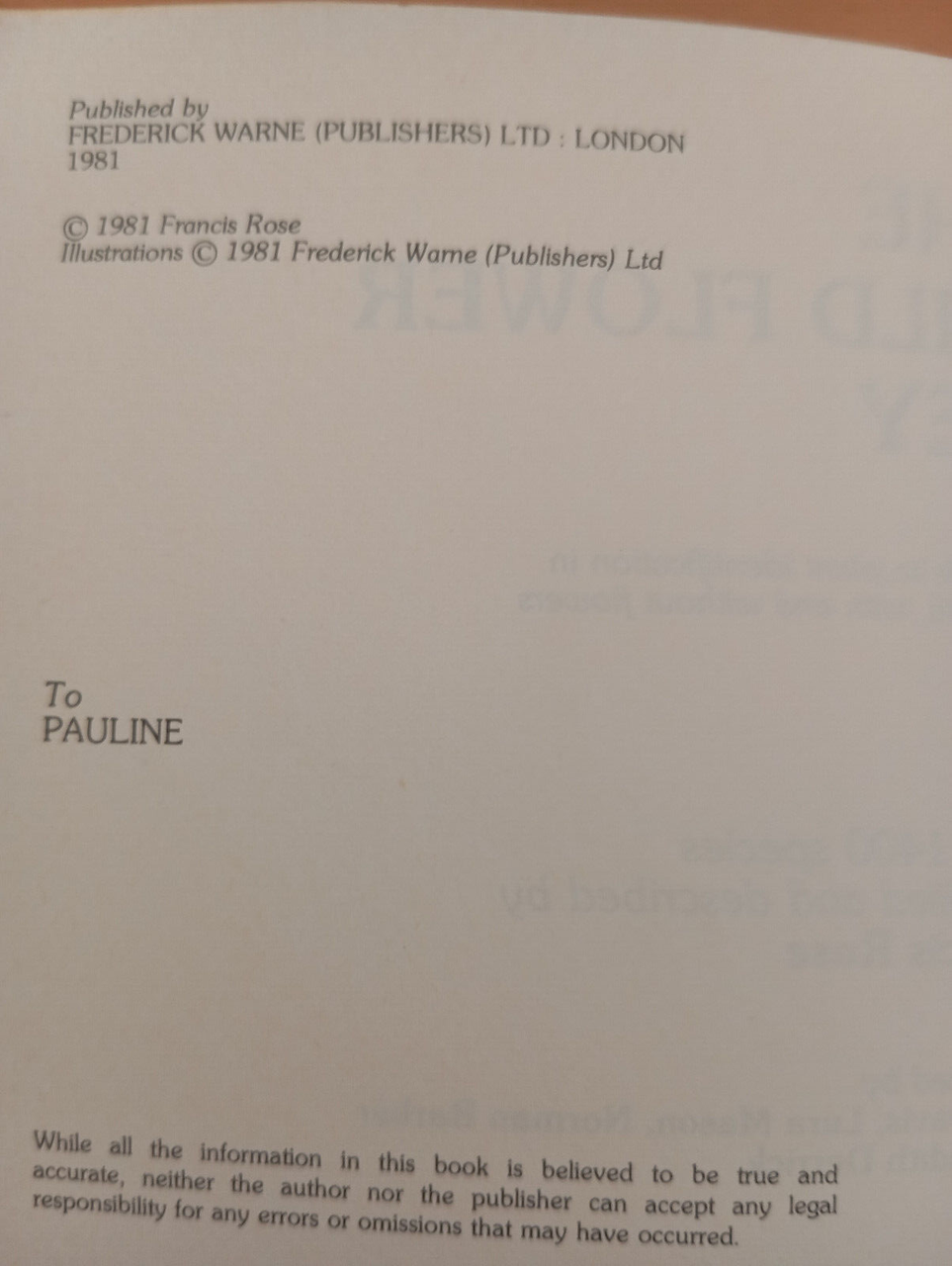 The Wild Flower Key: A Guide to Identification in the Field, Francis Rose, 1981