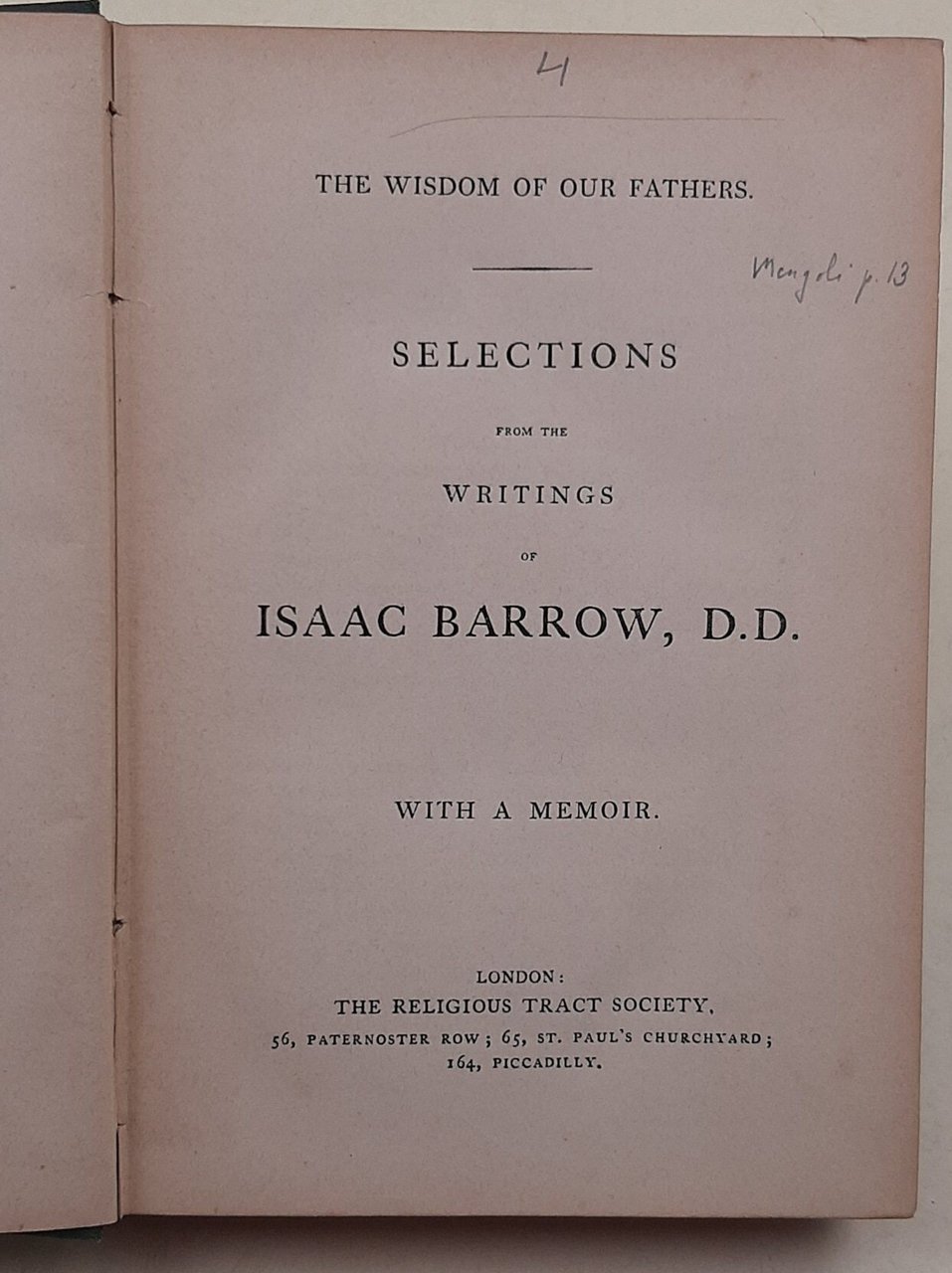 The Wisdom of our fathers-selection from the writings of Isaac Barrow- with a memoir