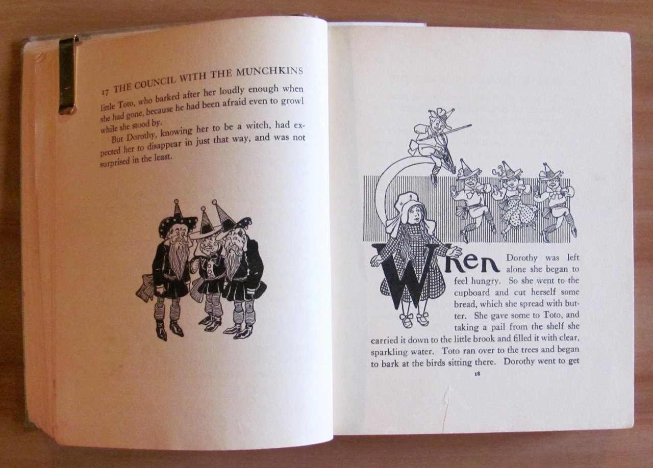 Molte illustrazioni in b/n, di cui 7 a piena pagina, e 8 belle tavole a colori f.t. di W. W. Denshow. Publ. Blue Ribbon Books, Inc. - New York, I edizione 1934. Tela editoriale illustrata al piatto con lieve scoloritura al margine alto della retrocopertina e del dorso. Le sguardie hanno delle lievi macchioline del tempo. La pagina 1 presenta una mancanza restaurata al margine bianco basso (come da foto) mentre le prime 8 pagine e la 45 hanno dei piccoli tagli, sempre al margine basso, che non ledono ne' i testi, ne' le illustrazioni. Peraltro interno freschissimo e pulito. 18,5x23,5; pp.210. Raro e in Buono stato. , Molto buono (Very Good)