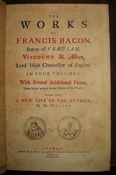 The works of Francis Bacon, Baron of Verulam, Viscount St. Alban, Lord High Chancellor of England. In four volumes. With several Additional Pieces, never before printed in any Edition of his Works. To which is prefixed, a new life of the Author, by Mr.Mallet