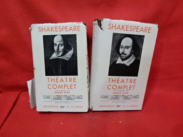 Paris, Éditions Gallimard, La Pléïade, 1950; in-12, XCII-1682 pp., reliures d'éditeur plein cuir, coloris corinthe, dos lisse, tête bleu violet, sous jaquettes (état moyen) . Bibliothèque de la Pléiade, N° 50 et 51. Avant-propos d'André Gide. Traductions de Copeau, Bing, Fleg, Gide,Hugo, Jouve, Pitoeff, Leyris, Holland, Maeterlinck, Morand, Schwob, Pourtalès et Supervielle.