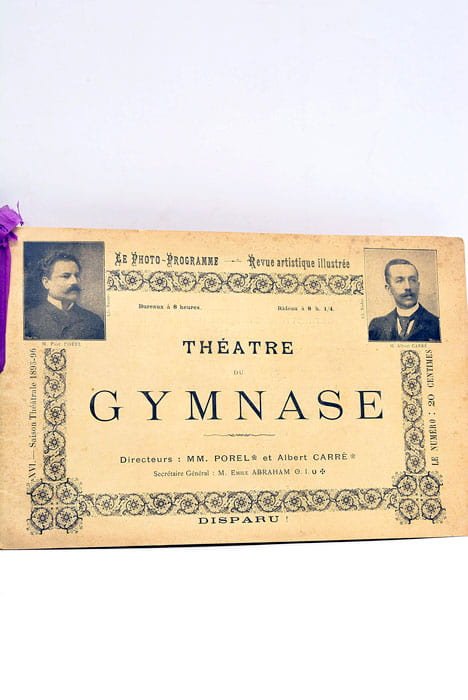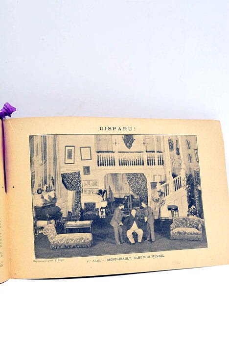 12 feuillets. (15,5 c24 Cm). Broché. Couverture imprimée, illustrée. Quelques taches. Photo-programme du Théatre du Gymnase pour la comédie en 3 actes"Disparu !" de MM. Alexandre Bisson et André Sylvane. Le programme est illustré par des photos en noir et blanc des acteurs et des scenes de la pièce. Quelques pages publicitaires.